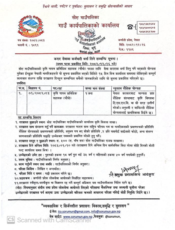 » करार कर्मचारी भर्ना सम्बन्धि सूचना ।(कृषि प्राबिधिक सहायक चौथो )