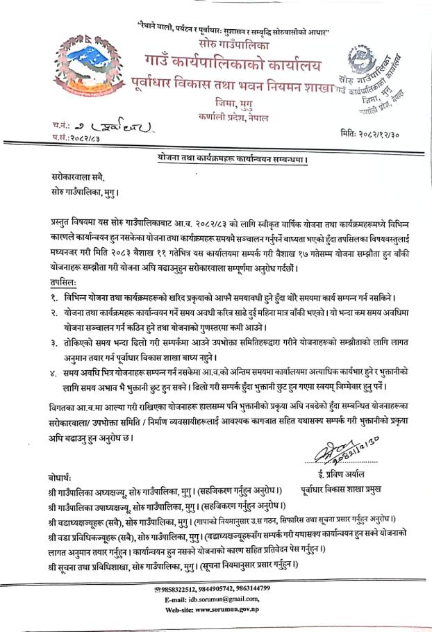 सोरु गाउँपालिका मुगुको क्षमता विकास योजना २०७९।८०-२०८१।०८२