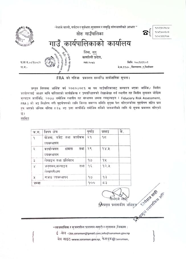 FRA को नतिजा प्रकाशन सम्बन्धि सार्वजानिक सूचना ।